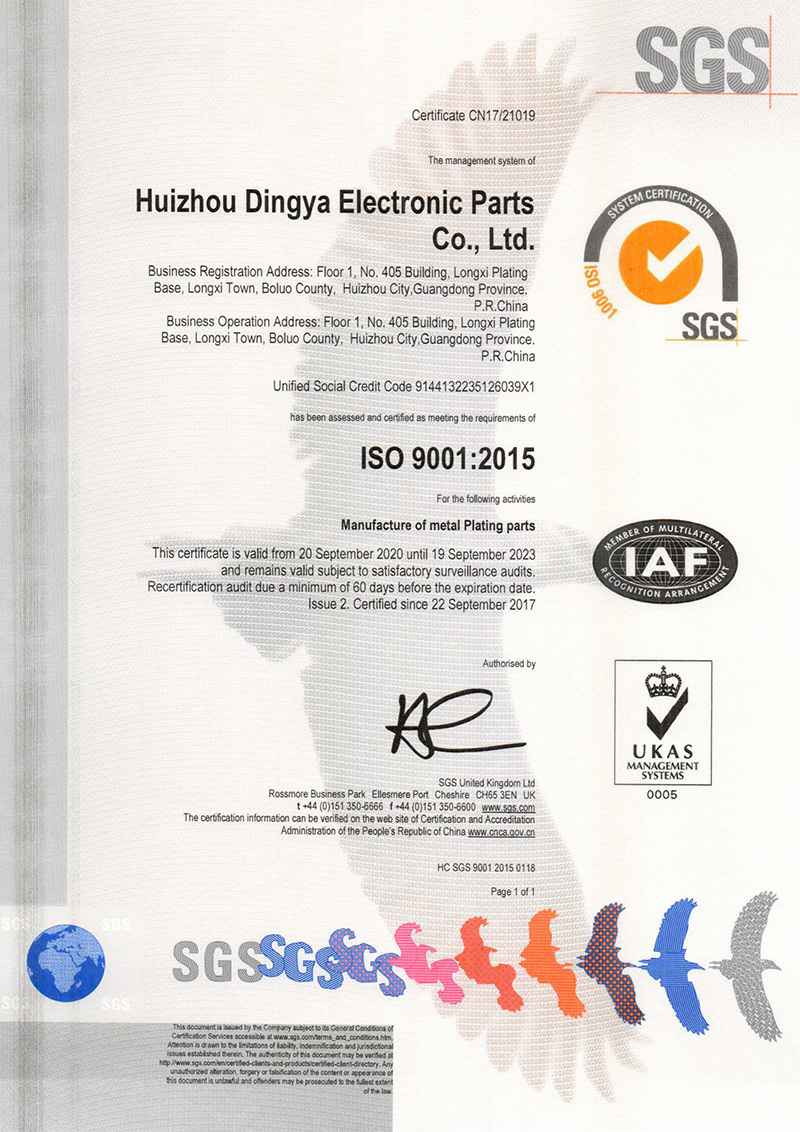 ISO 9001:2015认证证书
